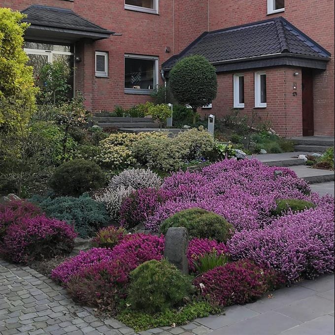 Ein Vorgarten muss verschiedene Aufgaben erfüllen: Er ist der öffentlich einsehbare Eingangsbereich eines Grundstücks, der zwischen dem Gebäude und der Straße liegt. Zum Vorgarten gehört üblicherweise die Abgrenzung zur Straße hin durch einen Zaun oder eine Hecke, der befestigte Weg zum Hauseingang, ein sichtgeschützter Platz für die Mülltonnen sowie ggfs. ein Abstellplatz für Fahrräder. Vor allem aber gehört zum Vorgarten traditionell eine Pflanzfläche: Grüne Vorgärten sind lebendig und abwechslungsreich. Sie sind die grüne und blühende Visitenkarte des Hauses, der Straße, des Quartiers und das Beste: mit einer professionellen Pflanzenauswahl sind sie überraschend pflegeleicht.