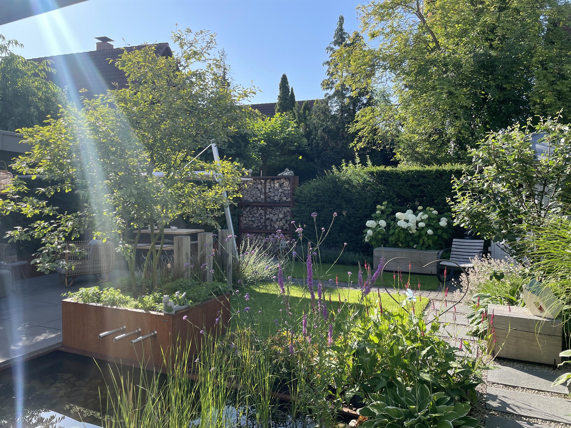 Technische Präzision und organischer Fluss, wild und gezähmt zugleich, bewusst komponiert und doch offen für Veränderung: Ein Besuch im Garten von Landschaftsgärtner Markus Kohlmann in Hennef ist eine Einladung, Gärten neu zu denken. Der gestalterische Ansatz des Gartenplaners ist die Verbindung von Gegensätzen – und so wagt sein eigener Garten auf 2.800 Quadratmetern den Spagat zwischen alt und neu, geometrisch und organisch, befestigt und ökologisch, heimisch und exotisch, spielen und ruhen, abgrenzen und öffnen.