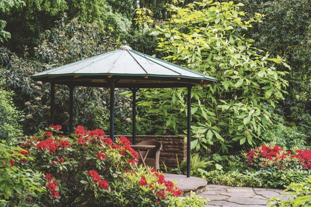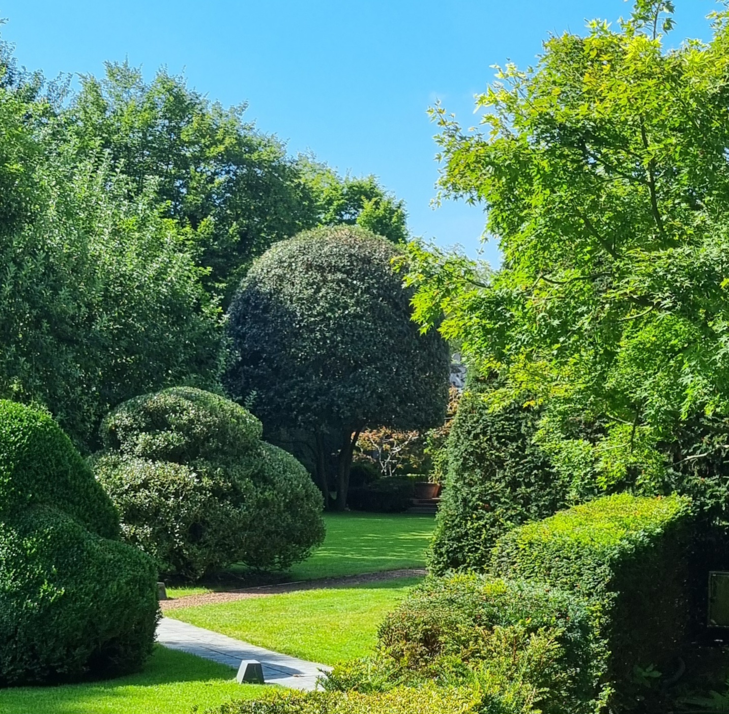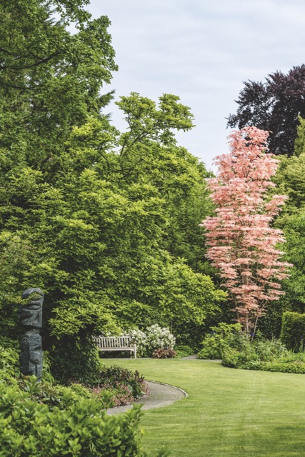 Ein wesentliches gestalterisches Prinzip – die gezielte Raumbildung durch Pflanzungen – ist dabei auch übertragbar auf Gärten in kleinerem Maßstab: Gehölzgruppen können auch dort Sichtachsen schaffen, den Blick lenken und den Garten in unterschiedliche Erlebnisräume gliedern. Spannende Wegeführungen unterstützen eine solche Dramaturgie und laden dazu ein, den Garten Schritt für Schritt zu erkunden. „Auch im Reihengarten empfiehlt es sich, einen locker aufgebauten, mehrstämmigen Baum nahe der Terrasse zu platzieren, der als visueller Filter Neugier weckt, ohne den Raum zu verschließen“, so Hermann J. Jansen. Auch Wasserflächen lassen sich heute problemlos in kleinere Gärten integrieren – etwa als kompaktes Becken in Kombination mit einem Solitärgehölz, dessen Spiegelbild zusätzliche Tiefe erzeugt.